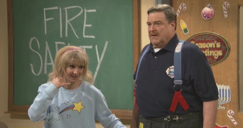 A fireman (John Goodman) visits a classroom to give fire safety tips, but Shallon (Nasim Pedrad) convinces the other kids (Aidy Bryant, John Milhiser, Noel Wells, Bobby Moynihan, and Kenan Thompson) they should jump into the fireplace to save Santa. With Kate McKinnon as Ms. Filley.