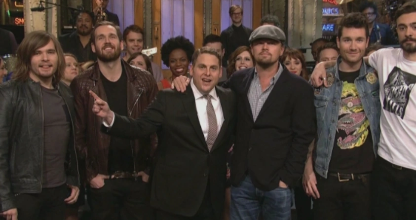 Jonah Hill’s goodnight speech is "Thanks To Bastille, Thanks To Leonardo DiCaprio, Thanks To Michael Cera, and to Lorne and This Great Cast, To the Writers and the Crew I Love You Guys Thank You". (Cheers and applause)