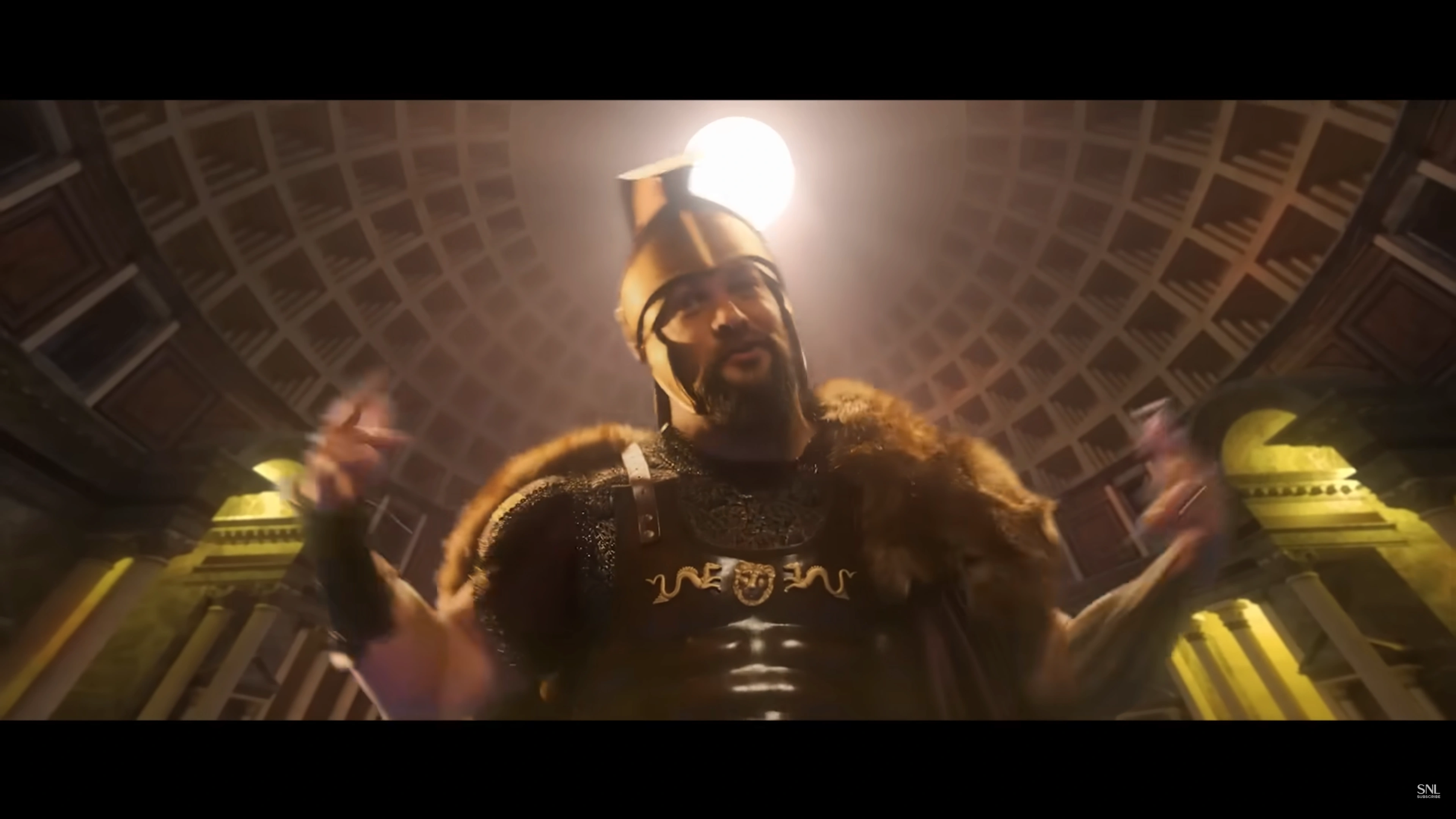 Three guys (Jason Momoa, Mikey Day, and Kenan Thompson) rap to their spouses/partners (Ego Nwodim, Punkie Johnson, and Chloe Troast) about how great Rome was.