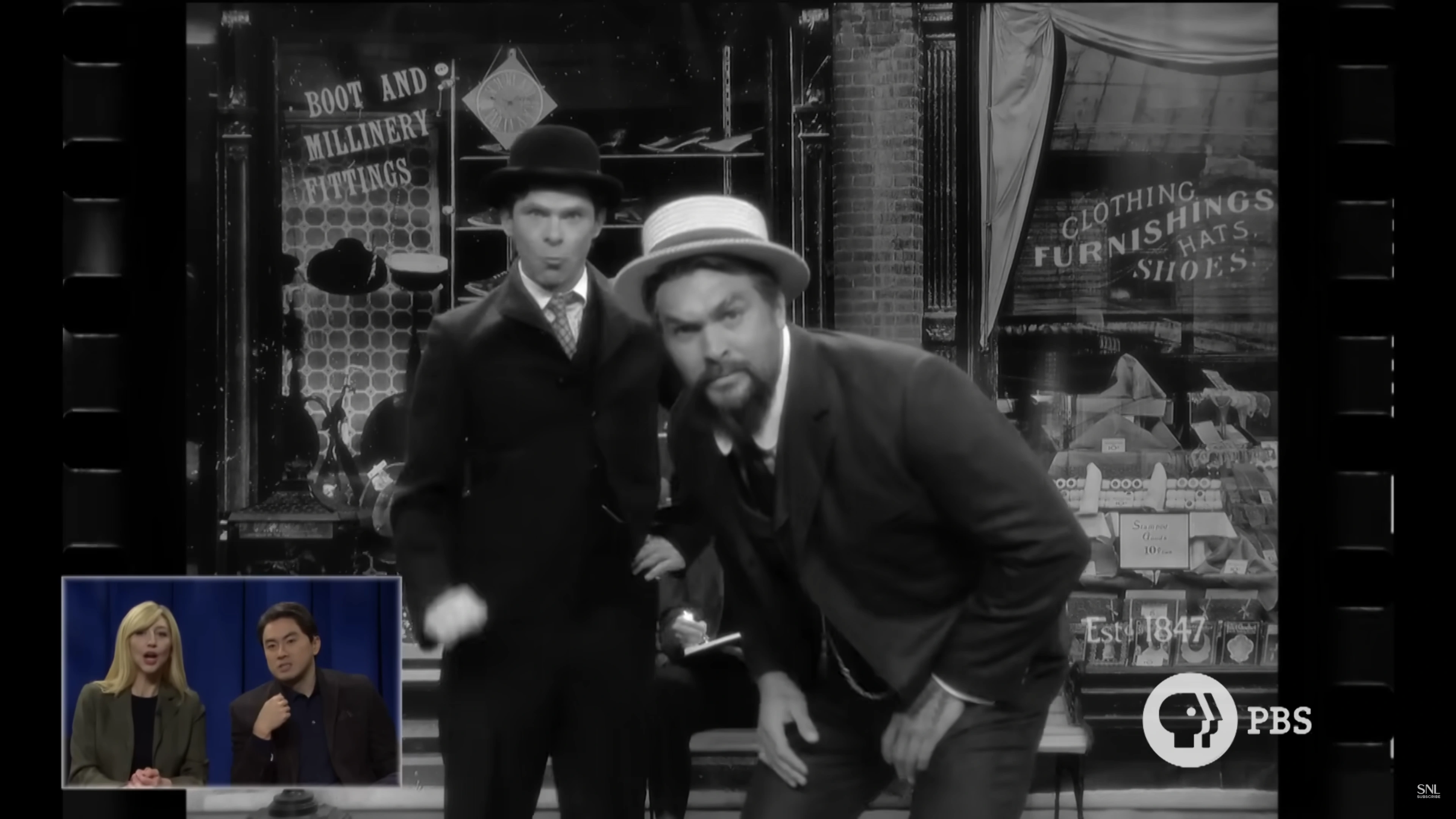 Two film critics (Heidi Gardner, Bowen Yang) try to watch B&W film featuring an actor (Michael Longfellow), but two guys (Mikey Day, Jason Momoa) keep interrupting it. Also Features Marcello Hernandez, Chloe Fineman, and Kenan Thompson at various points of the sketch.