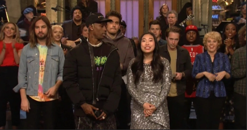 The 852nd episode and 2nd episode of Saturday Night Live's44th season premiered on October 6, 2018, hosted by actress, rapper and comedian Awkwafina, star of Comedy Central's hit comedy series Awkwafina Is Nora from Queens, as well as the hit films Crazy Rich Asians, Ocean's 8, Jumanji: The Next Level, Swan Song, and Quiz Lady, Disney's hit animated film Raya and the Last Dragon, DreamWorks Animation film The Bad Guys, and the Marvel Cinematic Universe (MCU) superhero film Shang-Chi and the Legend of the Ten Rings, with rapper, singer and songwriter Travis Scott as the musical guest. This is Awkwafina's hosting debut and Travis Scott made his musical guest debut on SNL.
