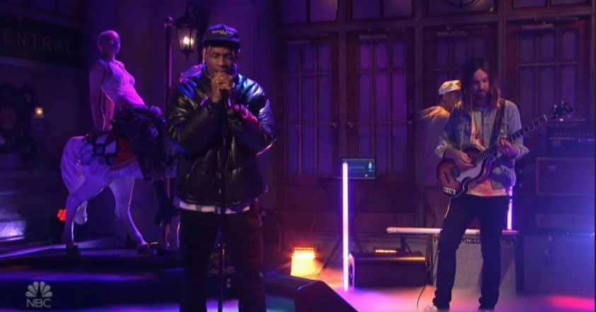 Travis Scott performed a medley of "Skeletons" and "Astrothunder". Scott is joined by John Mayer and Kevin Parker of Tame Impala.