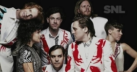 On the new episode Version, Tina says "Thanks To Arcade Fire, Aaron Paul, The Cast, Lorne, You Guys We Got Something to Say to You Guys Tonight the Network Is Letting Us Go Long Tonight, Arcade Fire Has a Show Tonight, So Don’t Go Anywhere, It’s About to Get Weird". (Cheers and applause)